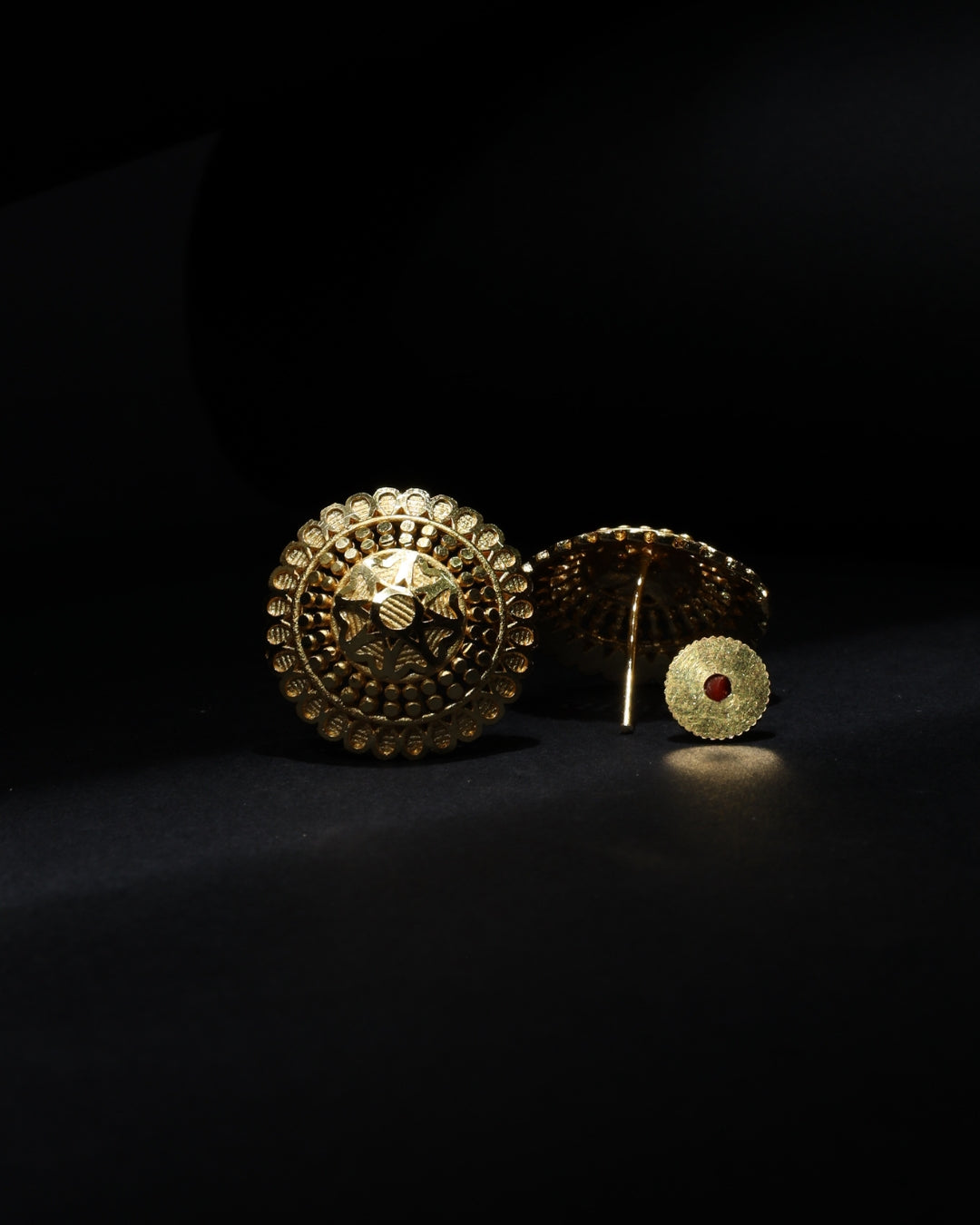 * Design: Traditional round stud with intricate Filigree and Jaali (net) patterns.